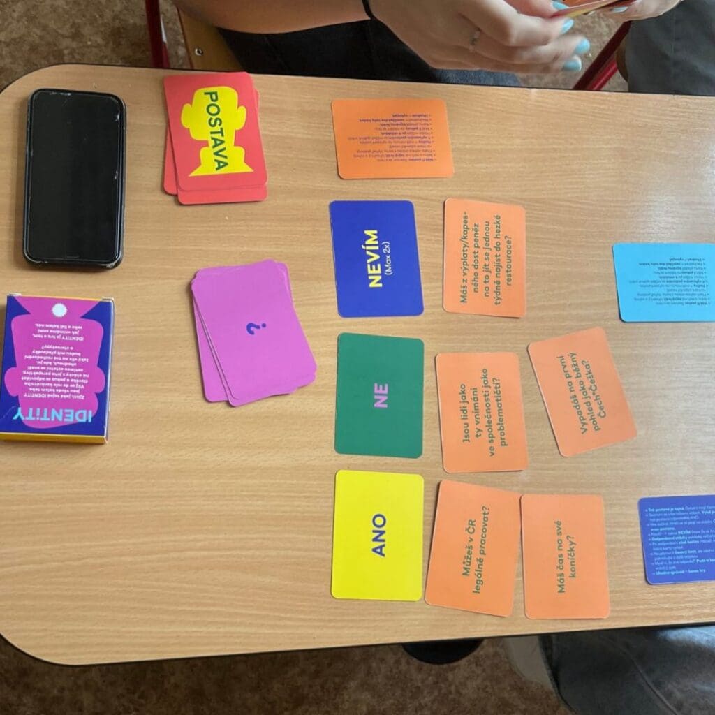 Soňa: Jak Příšerky, tak Identity mám jako pedagožka ráda, protože jsou interaktivní: jeden využívá online hru, a druhý karetní hru. Děti se tak mohou vžít do role cizince a na vlastní kůži zjistit, jaké to je tady v této společnosti žít.